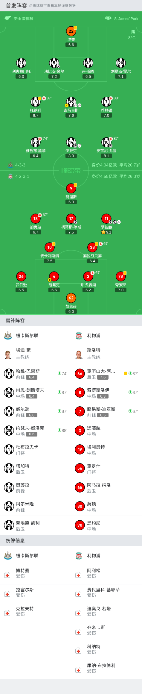 在比赛过程中,双方球员都展现出了顶尖的技术和拼搏精神。纽卡斯尔的麦卡利斯特在前场频频制造威胁,而利物浦的萨拉赫也在进攻端表现抢眼。不仅如此,纽卡斯尔的墨菲和利物浦的范戴克等后卫球员也在比赛中展现了出色的封堵和解围能力,保障了各自球队的防守稳定。
